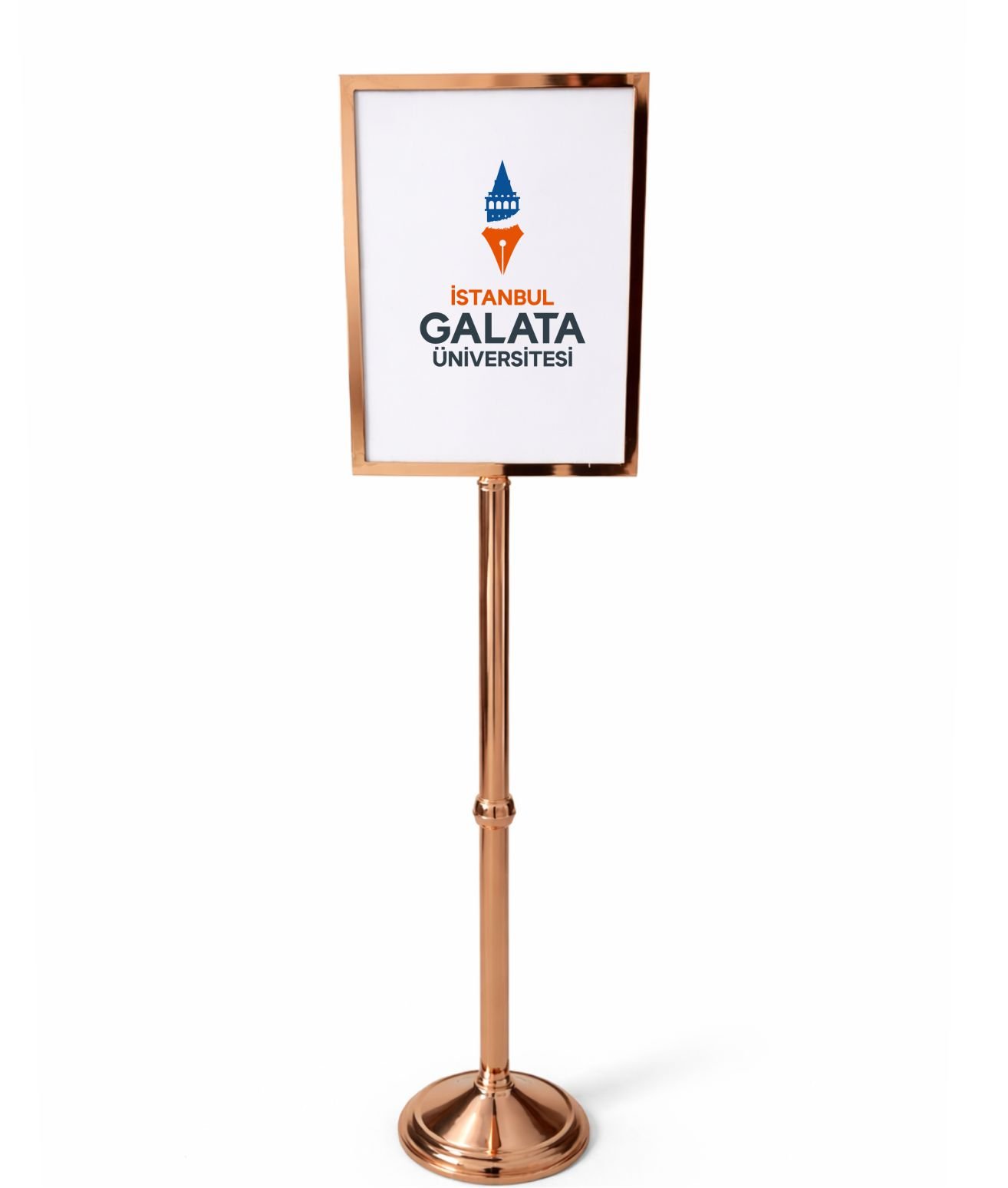 Organizasyonlarınızda, otel lobilerinde veya restoran girişlerinde misafirlerinizi şıklıkla karşılayın. Yüksek kaliteli pirinç malzemeden üretilen ve göz alıcı bakır/rose gold kaplamasıyla dikkat çeken yönlendirme tabelamız, hem dekoratif hem de işlevsel bir çözüm sunar.